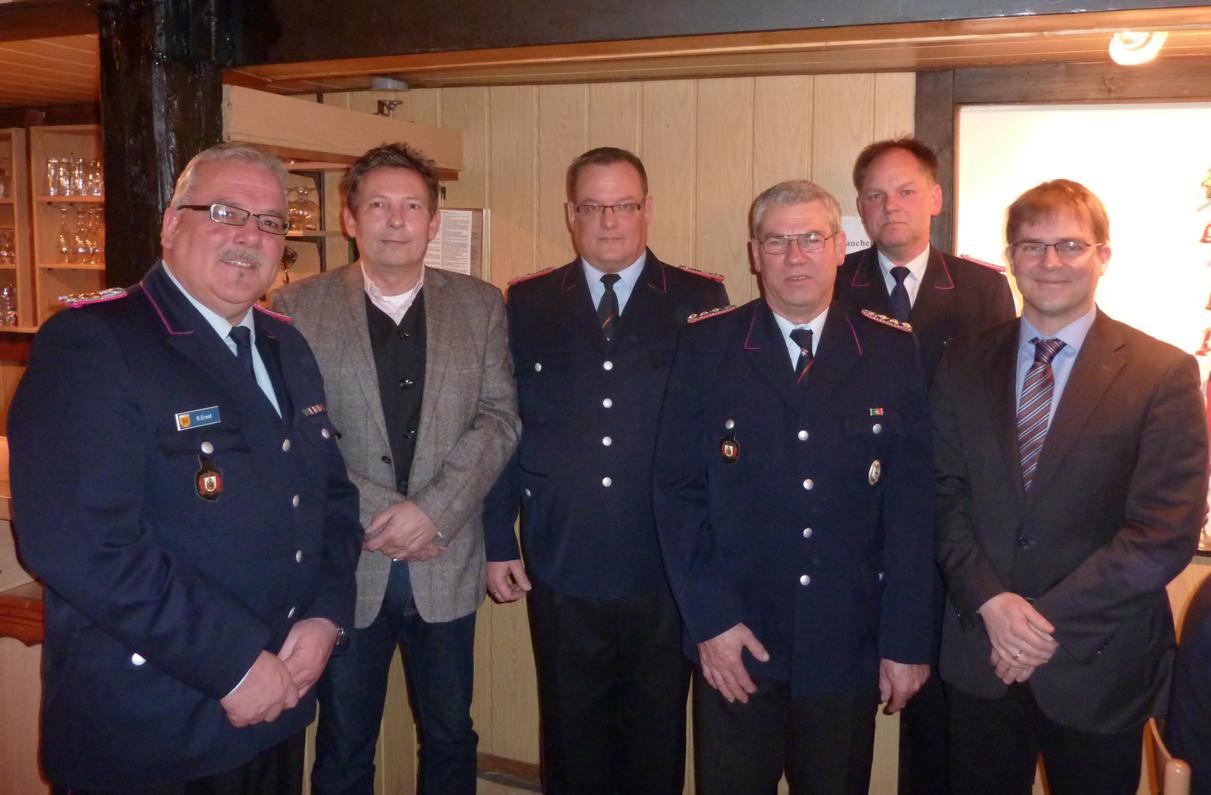 Auf dem Foto zu sehen sind (v.l.n.r.) Stadtbrandmeister Rüdiger Ernst, Ortsbürgermeister Andreas Meier, neuer stellvertretender Ortsbrandmeister Martin Bartz, dessen Vorgänger Klaus Ohlendorf, Ortsbrandmeister Wolfgang Wiese und der Leiter des Amtes Ordnung/Recht der Stadt Peine, Lutz Hoffmann.