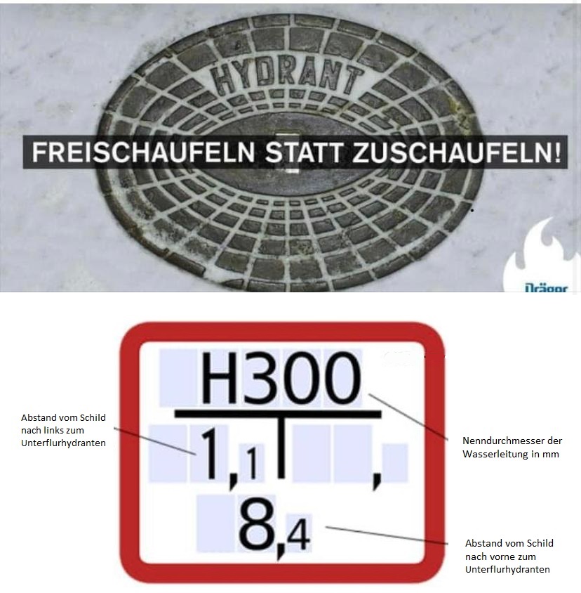 viele von Ihnen und Euch sind in diesen verschneiten Tagen vorbildlich bemüht, Gehwege und Zufahrten an den Grundstücken von der weißen Schneepracht zu befreien. Häufig noch mit Schnee bedeckt oder sogar versehentlich mit ganzen Schneemassen zugeschaufelt, sind jedoch viele der im Boden eingelassenen Unterflurhydranten, die der Feuerwehr eine schnelle Löschwasserversorgung ermöglichen. Sind diese im Einsatzfall nicht schnell zu finden oder müssen erst freigelegt werden, verzögert sich ggf. die Brandbekämpfung, sodass Menschenleben und Sachwerte gefährdet werden. Bitte halten Sie Ihre bzw. haltet Eure nächstgelegenen Unterfluhydranten - auch im eigenen Interesse - frei von Schnee und Eis.